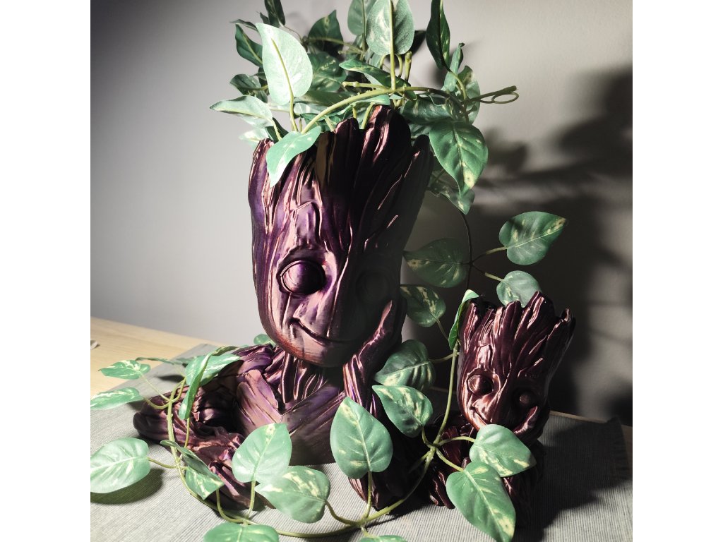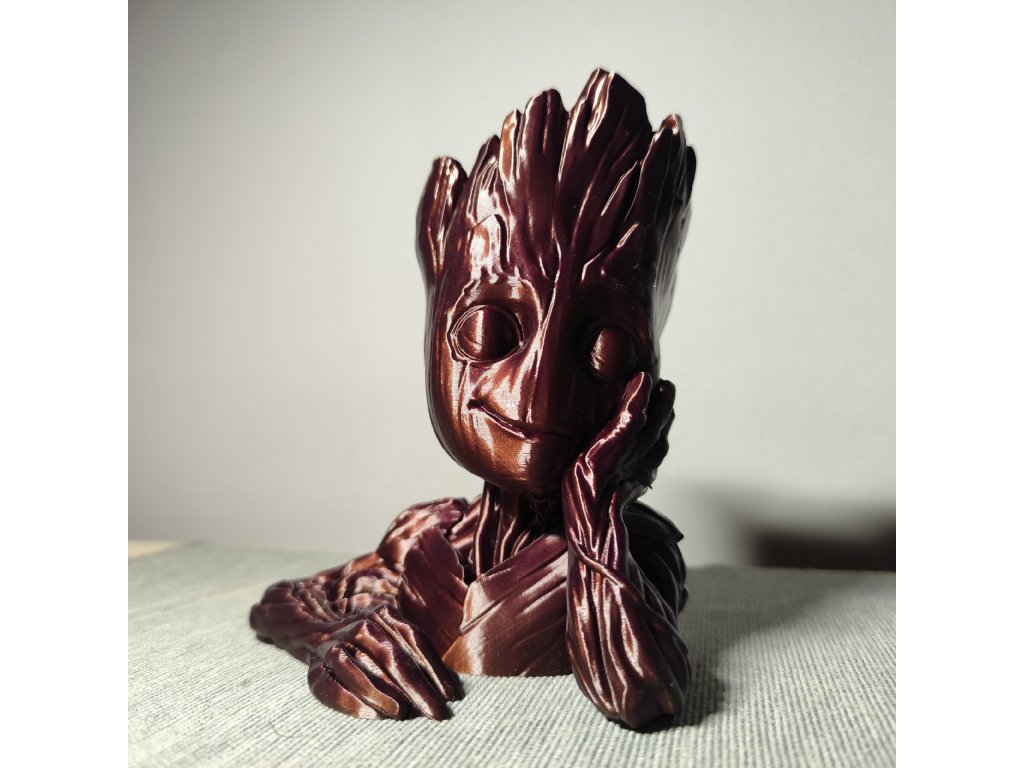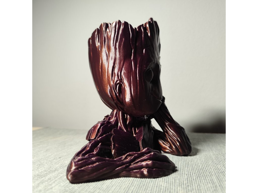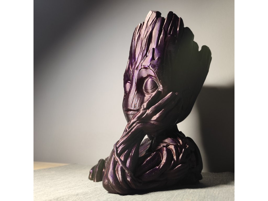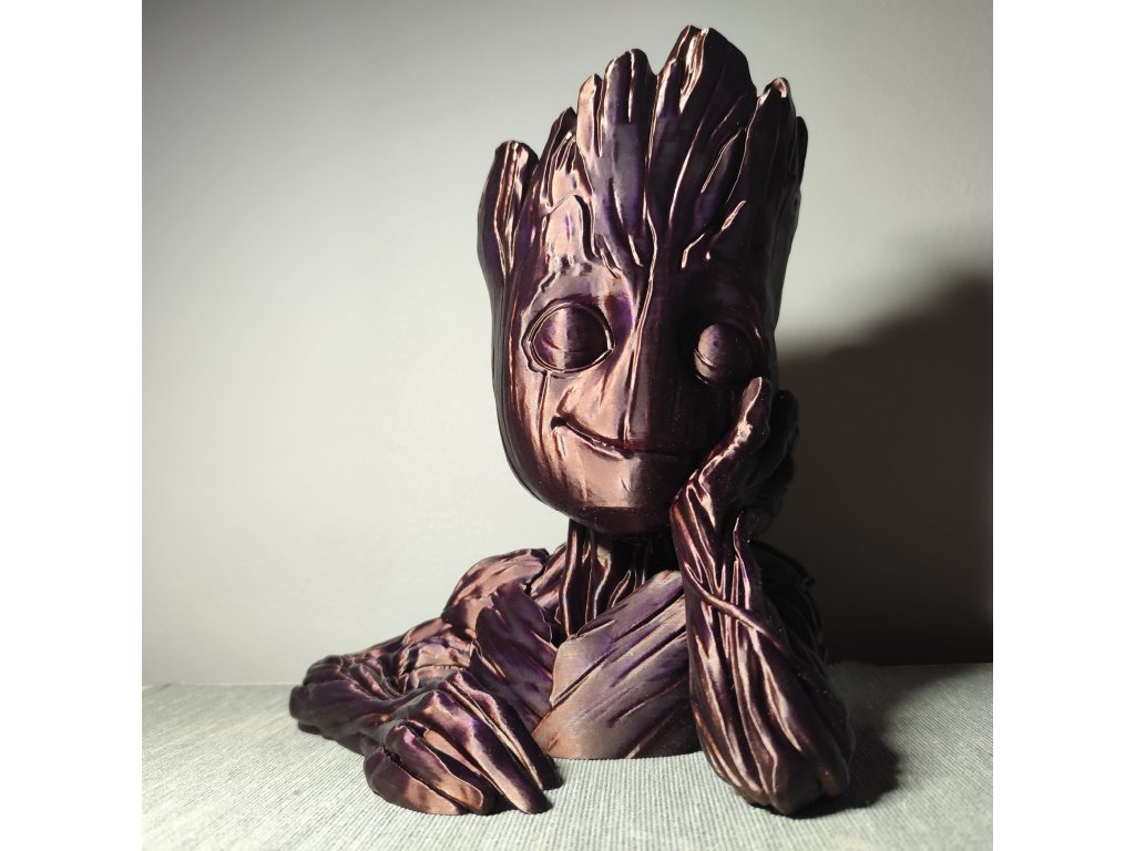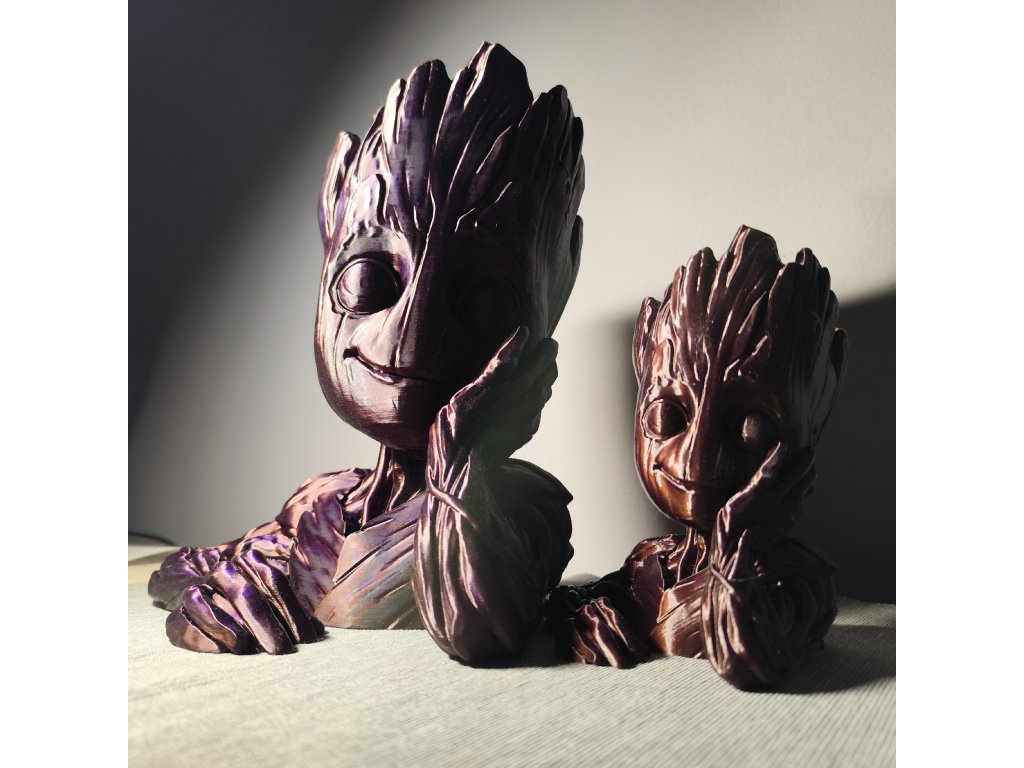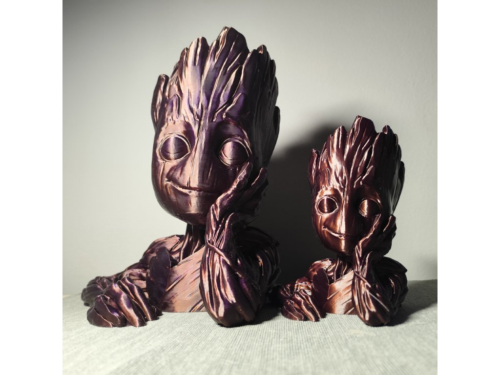 Můžeme po dohodě samozřejmě vytisknout v libovolné aktuálně dostupné barvě (pěkně vypadají třeba Galaxy Black (černá s jiskřičkami) nebo stříbrná) ; lze i zvolit jinou barvu očí, než je barva Groota. U varianty s pařezem lze nakombinovat různé barvy pro Groota, jeho oči i pařez (jako to vidíte na obrázku). Požadavek na barvu prosím specifikujte do poznámky.
