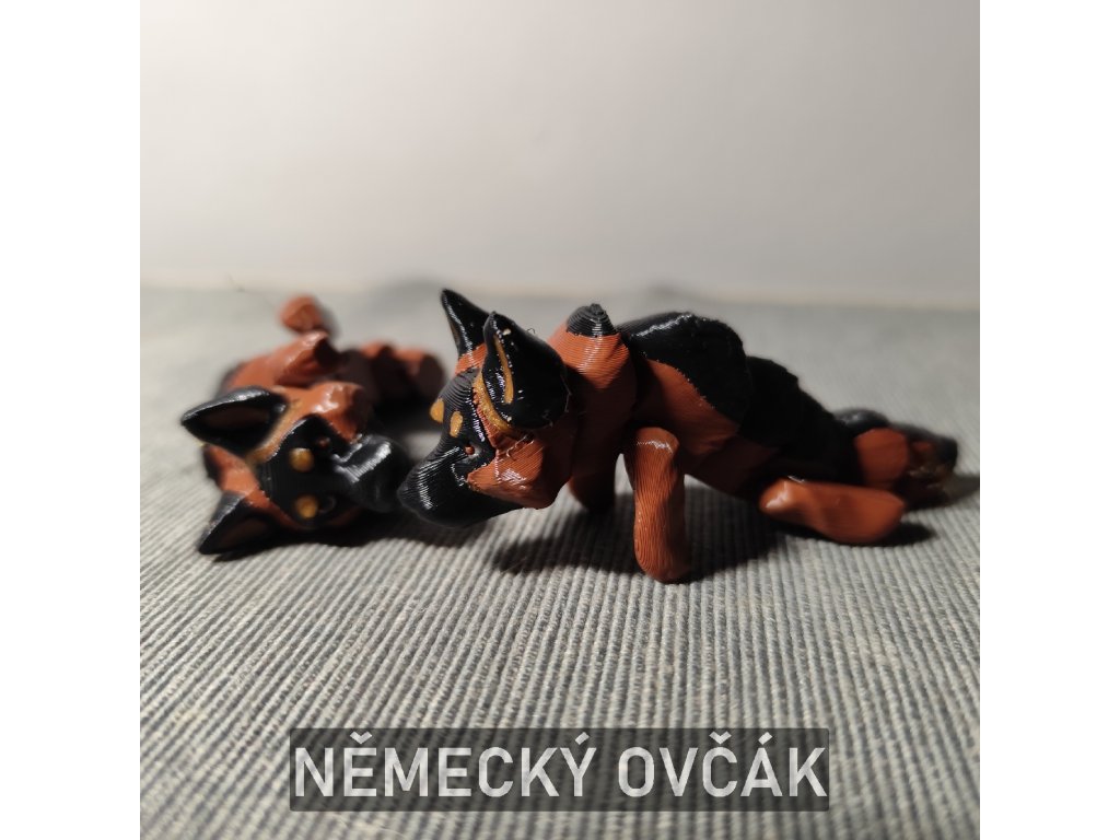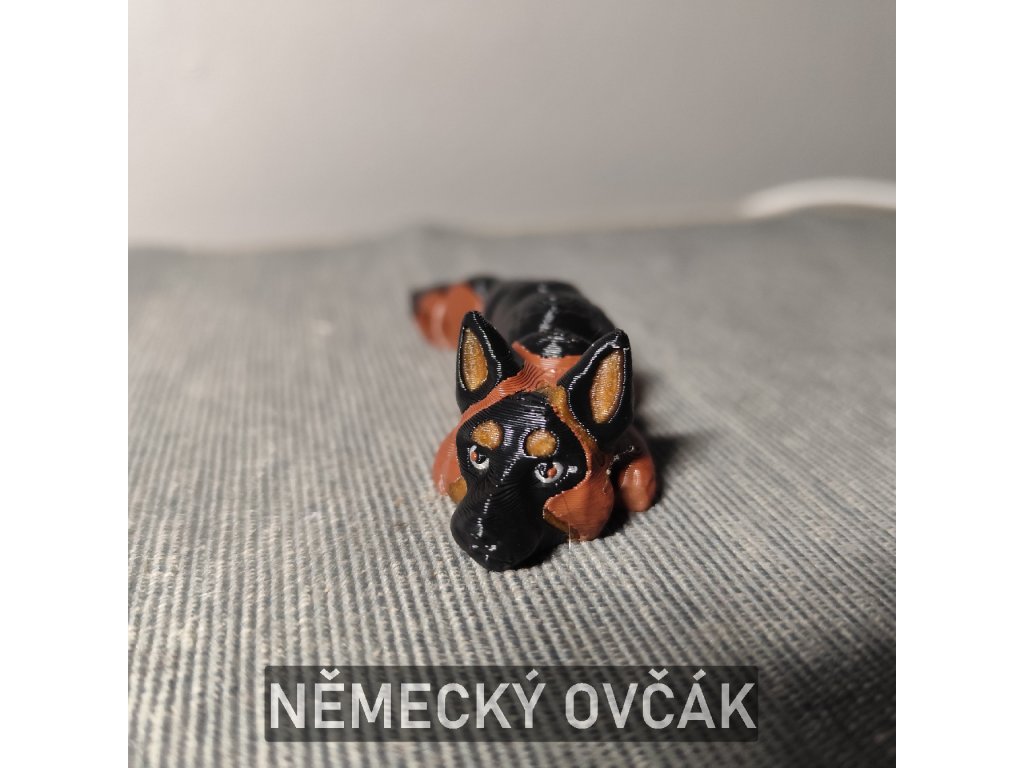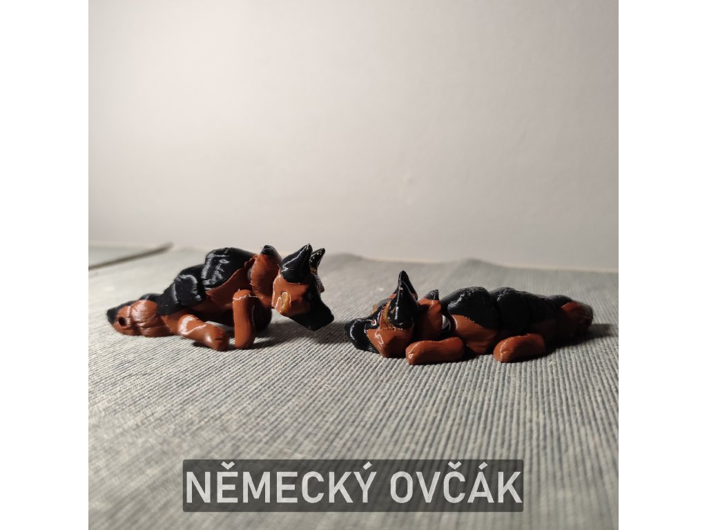 - Německý ovčák: cca 9,30 cm x 3,00 cm x 2,50 cm
