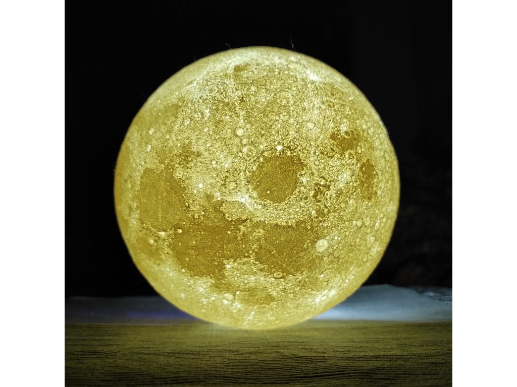 Vytištěno z kvalitního PLA plastu. Měsíc je vytištěn v bílé barvě, základna standardně v černém provedení. Pokud si budete přát změnu, stačí nám dát vědět v poznámce u objednávky.