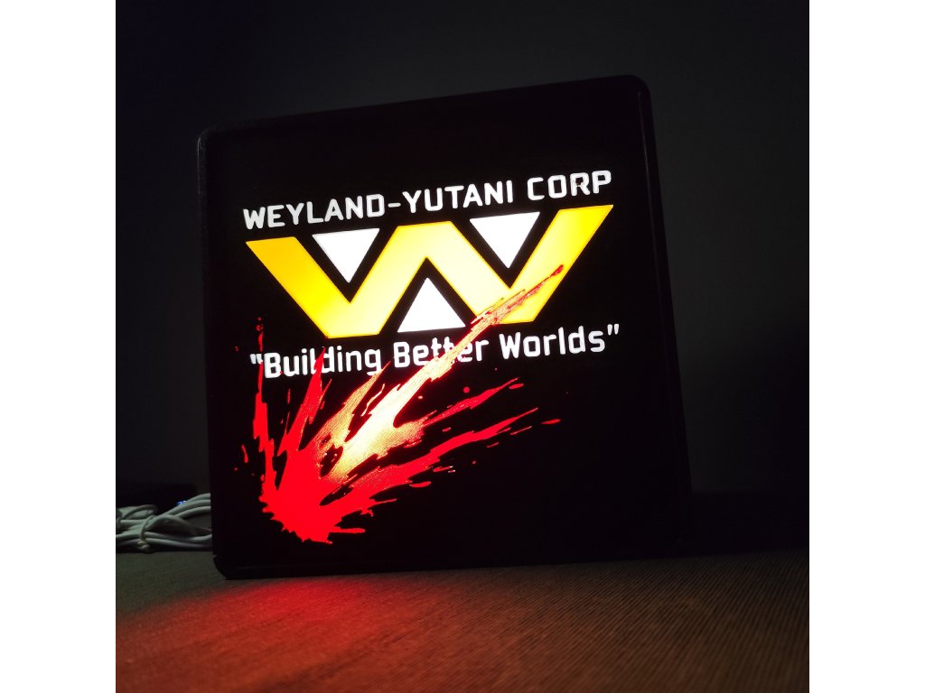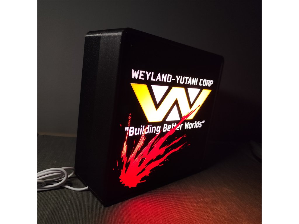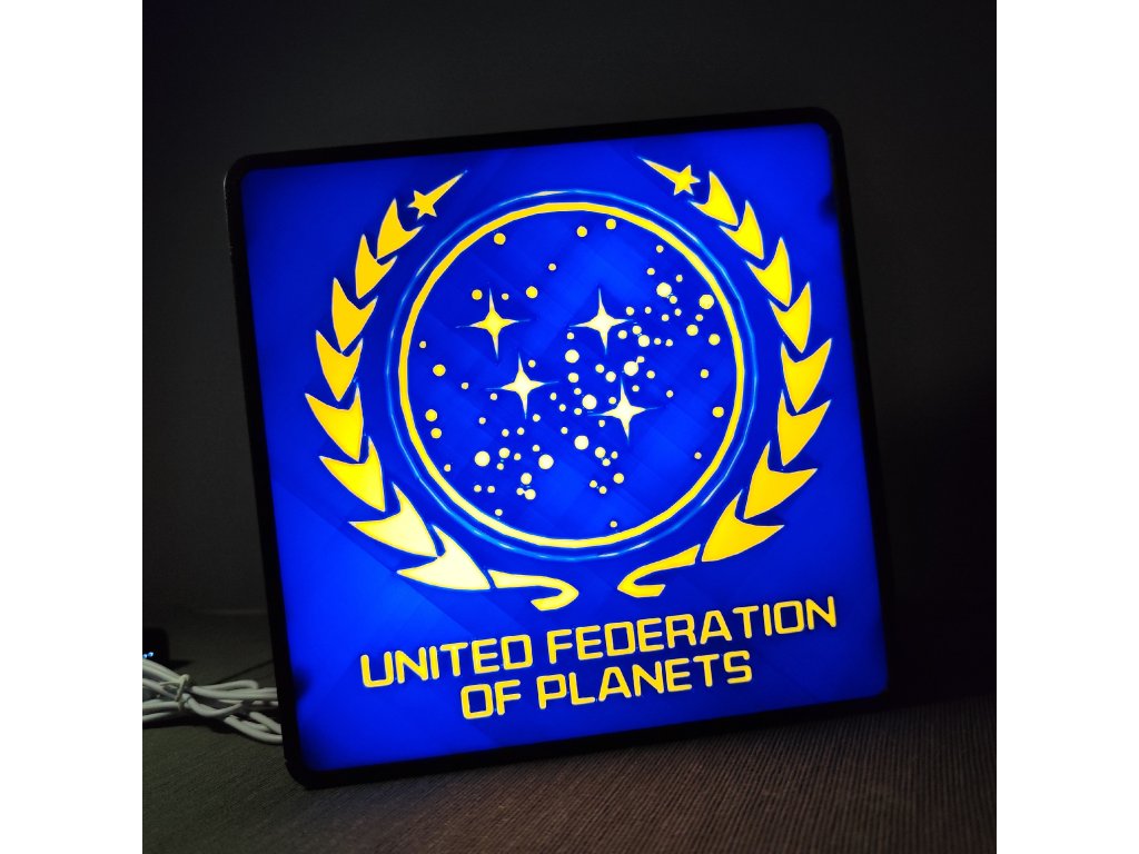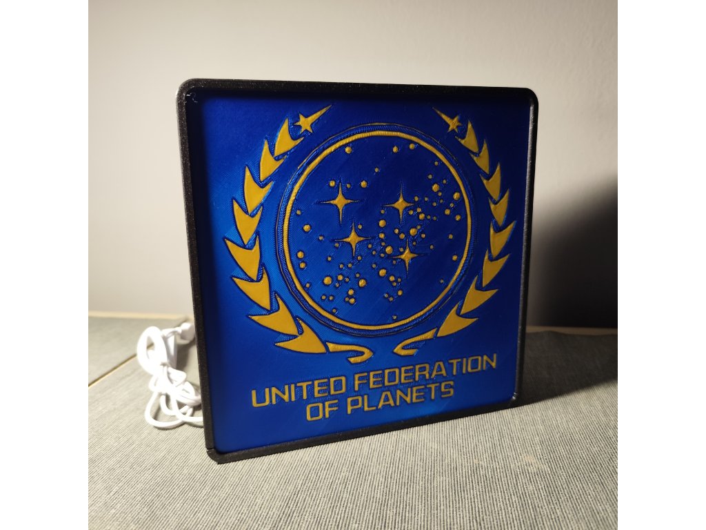 Čtvercová lampa se zaoblenými rohy a s logem známým ze seriálu či filmu na jedné či obou stranách.